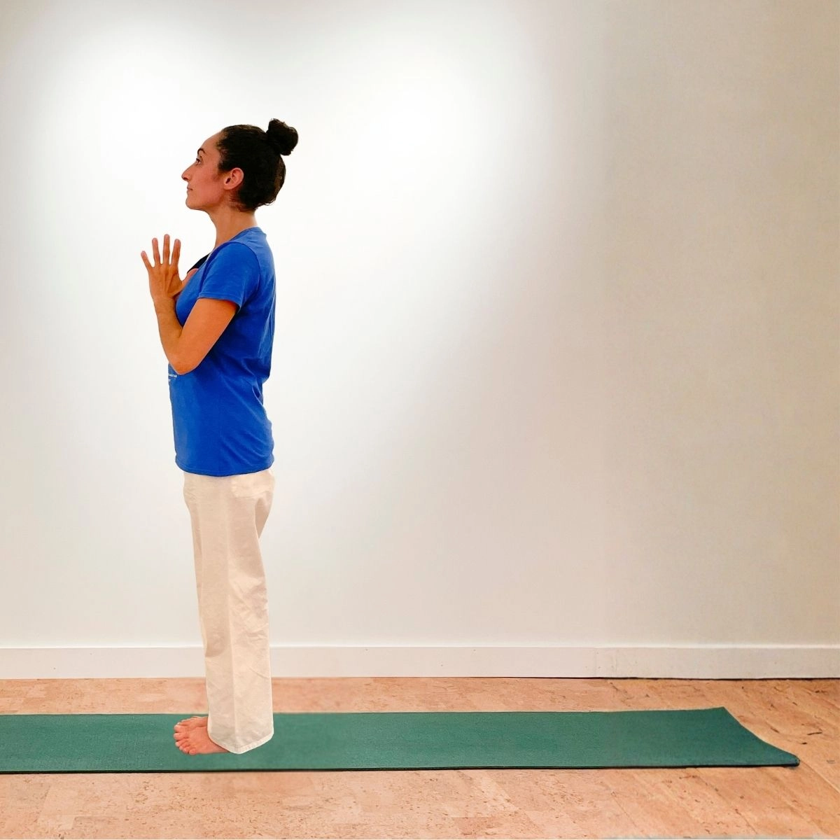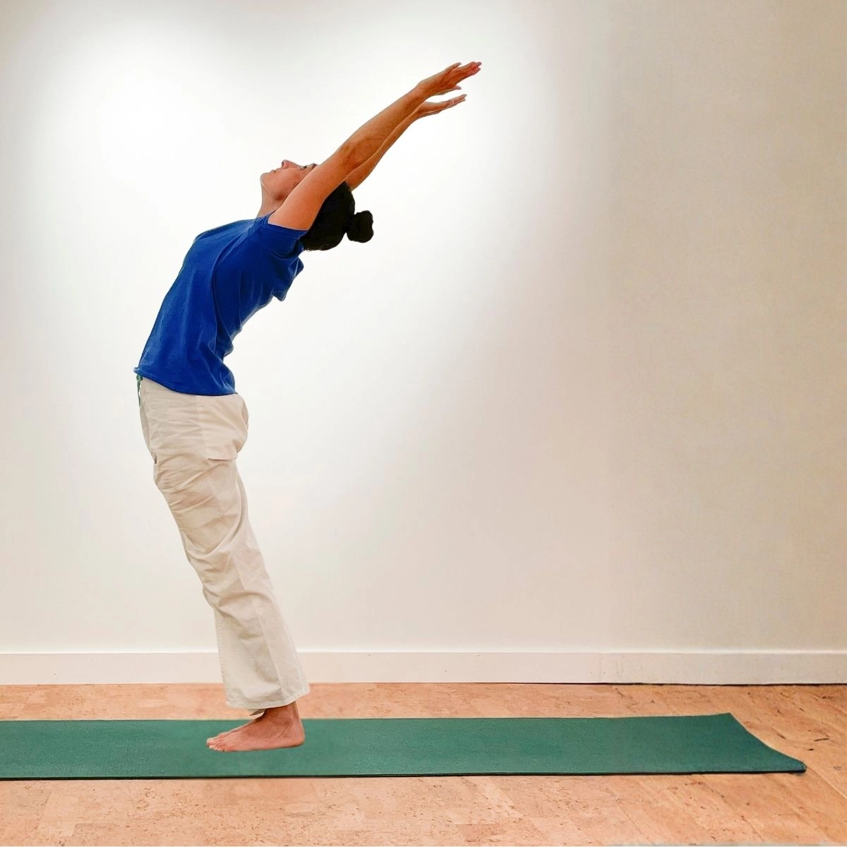 The Sun Salutation is a graceful sequence of twelve positions performed as one continuous exercise. Each position counteracts the one before, stretching the body in a different way and alternately expanding and contracting the chest to regulate the breathing. Practiced daily, it will bring great flexibility to your spine and joints and trim your waist. It limbers up the whole body in preparation for the Asanas (postures) as taught by Swami Vishnudevananda.